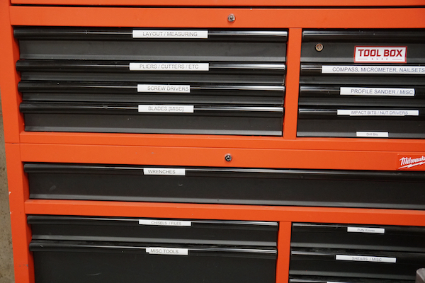 One aspect that I’ve incorporated into my tool organization is labeling toolboxes and tools. Let me explain: