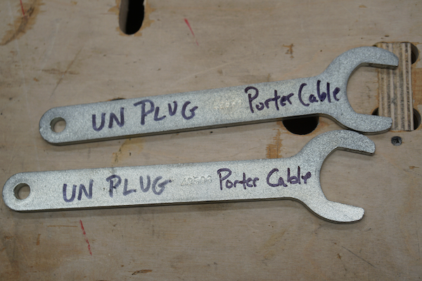 I have three routers and all three wrenches for them look the same, but their not the same. Labeling them saves me from the aggravation of fiddle around trying to find the correct wrench. A simple permanent black marker makes quick work of this.