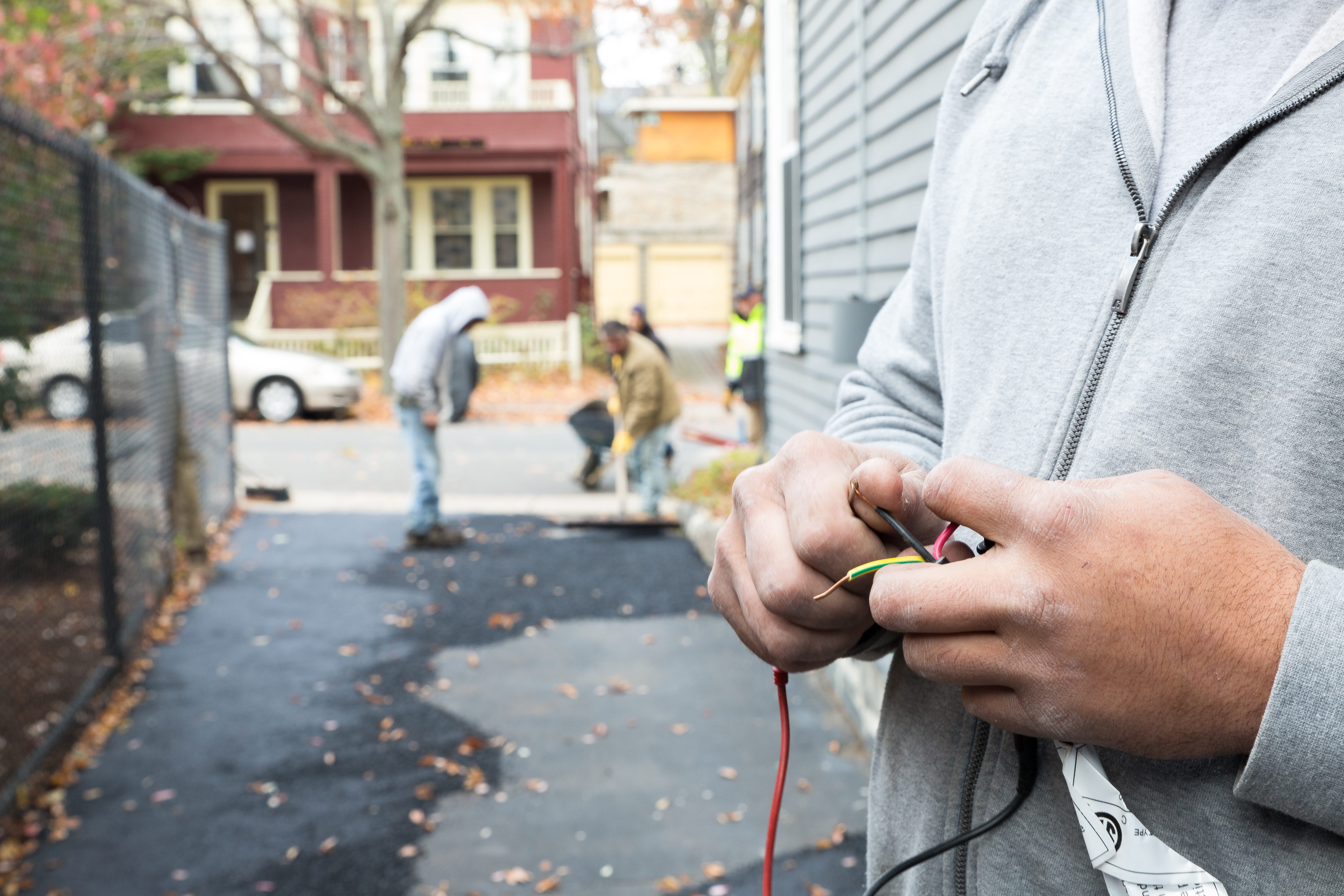 All electrical connections are made by a licensed electrician. The electrician may also run conduit and low voltage wires to any sensors you choose to install.