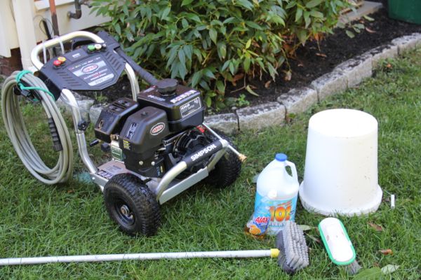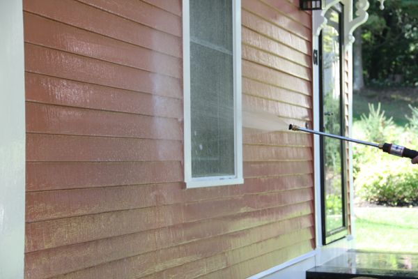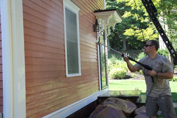 There are many ways to apply the cleaning solution from using a nylon brush and bucket, to a pressure pump sprayer to a pressure washer. We prefer using a pressure washer to wet, mix and propel the cleaning solution to the siding.