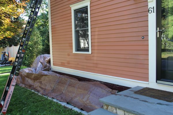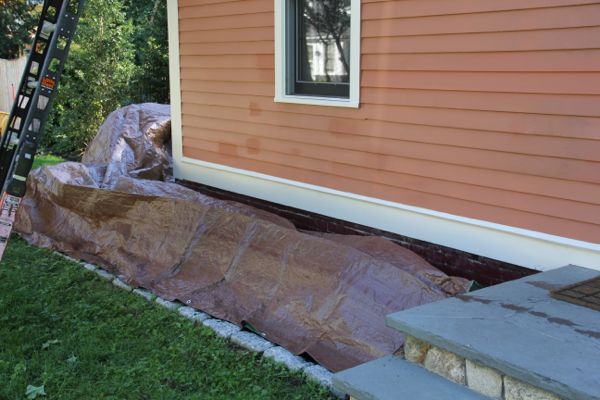 Prior to cleaning siding or washing cedar clapboards take a few minutes to wet down any vegetation , directly under the area to be cleaned. Then cover the plants with plastic or a tarp. [Do not leave on too long if working in direct sunlight]