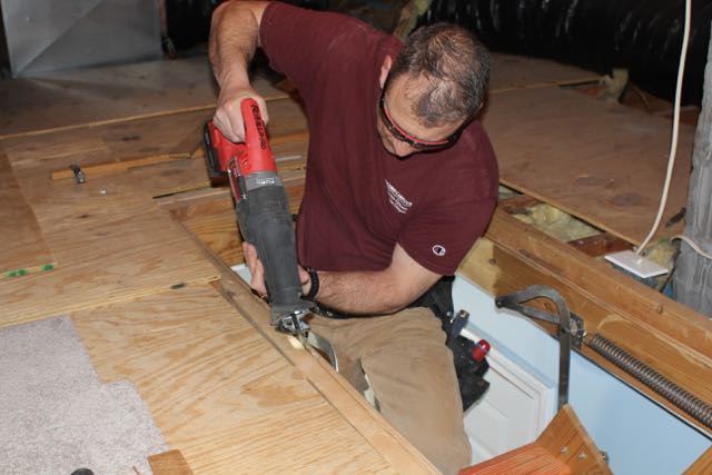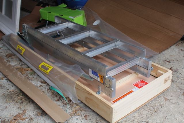 The unit was slightly smaller than the unit it replaced so we added four pieces of half inch plywood, two rips on each side to reduce the width by two-inches. It installs similar to the older inefficient wood ladder types and comes with special lag bolts to ensure strength and longevity.