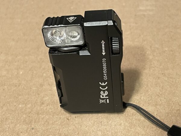 Rechargeable Battery – I have grown to love rechargeable flashlights after disposing of so many older flashlights that used disposable alkaline AA and AAA batteries prone to leaking battery acid.  The battery charges using the included 8-inch USB-C cord, which is very convenient given how popular the USB-C connection has become.  You need to slide the quick release switch all the forward to access the protected USB-C port in the flashlight.  After charging it, this battery lasts and lasts.  I used the G5 sporadically for more than a month and never once needed to charge the battery.  I finally charged the battery because I couldn’t believe how long it had persevered.  The recharging speed is also notably fast.  Notably, there is almost no risk of the G5 wasting battery life by turning on accidentally in your pocket or bag because of the sliding “off” switch and the recessed power button.