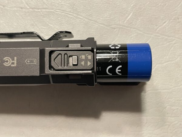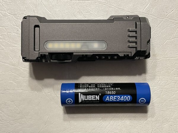 After charging it, this battery has tremendous staying power.  The battery’s longevity is definitely related to its very large size since it is almost as long as the flashlight itself.  The back end of the WUBEN X4 has a locking door that you can open to access the battery.