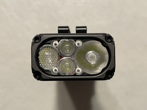 The locking switch below the power button provides the user with 4 distinct modes.  When in the “lock” position, there is no power to any of the included LEDs on the X4.  The second mode on the sliding switch is used for the side-light.  The third mode on the switch is for the front flood and spot lights.  The final position is used for charging the X4 since it also uncovers the included USB-C port.  It should be noted that the sliding switch moves very easily and it can accidentally move to other positions since it doesn’t firmly “catch” in any one spot.