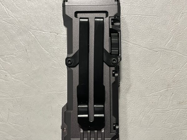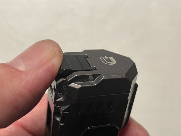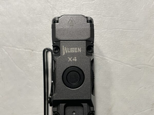 On the backside of the X4, WUBEN included a 2.5-inch metal pocket clip.  This clip is super sturdy and it’s a valuable addition because it kept the X4 secure inside my jeans pocket and it’s long enough to attach comfortably on most belts.  I believe many contractors or first responders would love having this WUBEN X4 attached securely to their belt.  The clip also maintained a confident connection when I attached it to the chest strap on my backpacks.