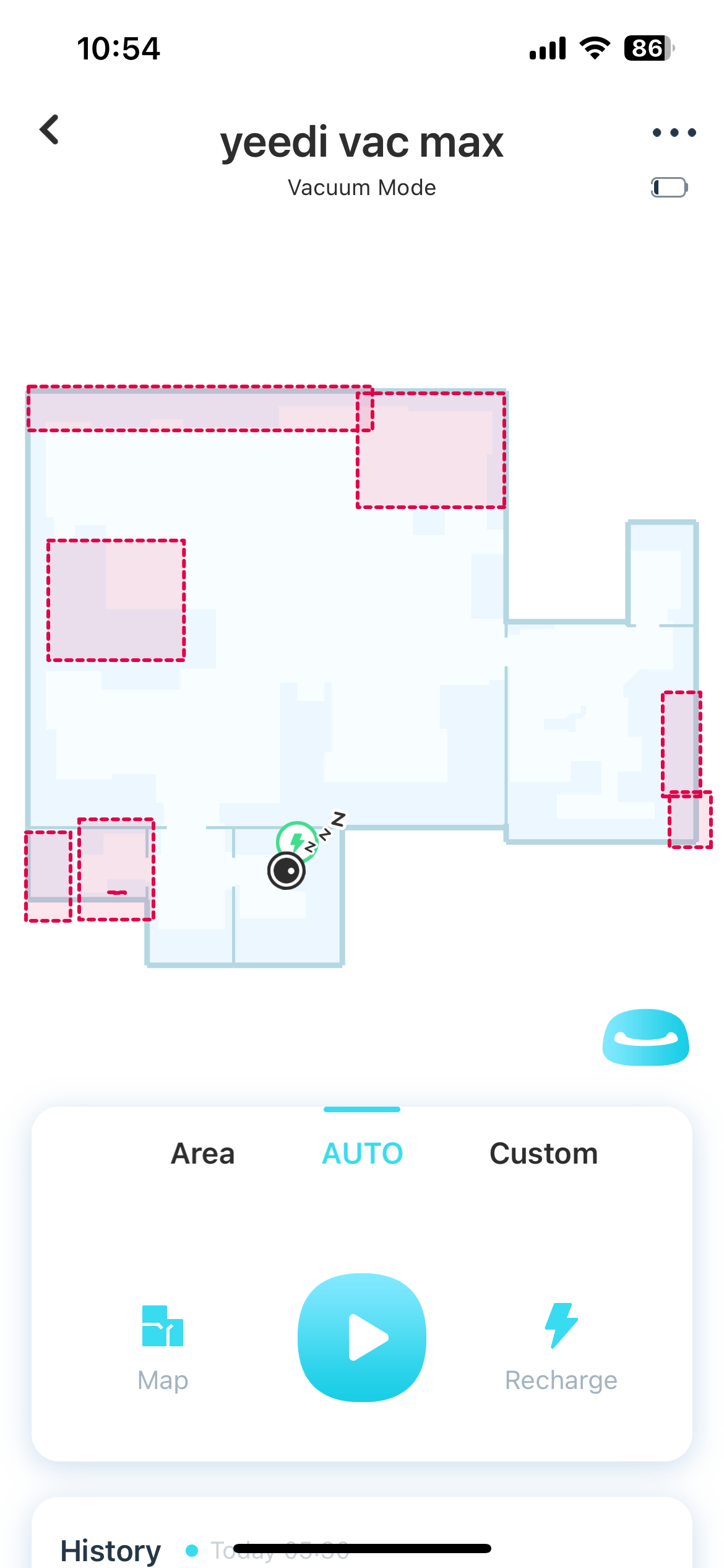 During the very 1st cleaning the YEEDI goes through the house and maps it. In addition to scheduling your cleaning, the Ap allows you to specify which areas of your house to clean. You can specify the areas you want to be covered or mark areas to avoid.