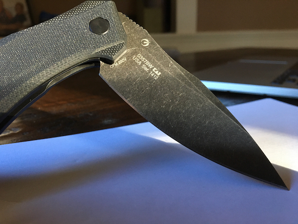 The CPM-20CV steel blade offers exceptional hardness, wear resistance, edge retention. I really like the BlackWash finish which helps hide blade scratches.